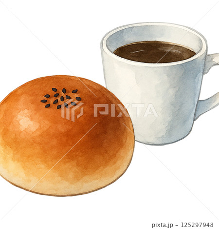 紅豆餅和咖啡的水彩插圖(日本糖果,早餐,白色背景PNG素材)