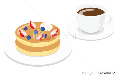 美味煎餅、熱餅、煎蛋的插圖