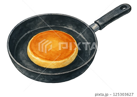 煎鍋烤的熱餅水彩插圖(食品和日用品)