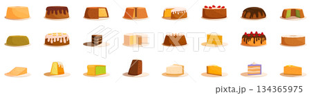 Chiffon cake icon set. Delicious cakes and pastries showing variety of flavors and frosting