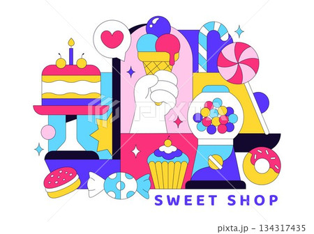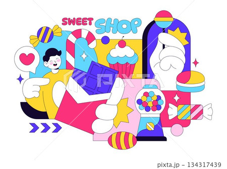 Sweet Shop Vector Illustration Featuring Sales Of Various Bakery Products Including Cupcakes Cakes Pastries And Candy In Flat Style Cartoon Background