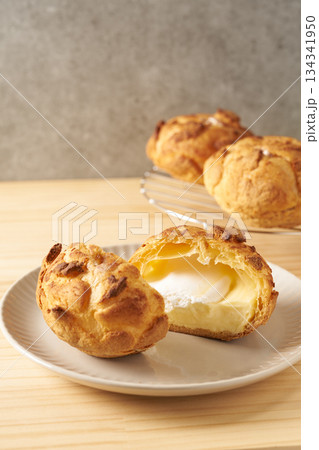 奶油泡芙、西點、甜點、點心的圖像。