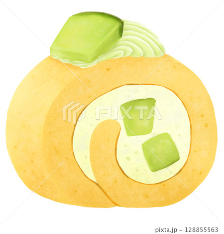 Matcha Roll Cake Illustration Green Tea Dessert Watercolor Clipart Japanese Sweet Food Art
