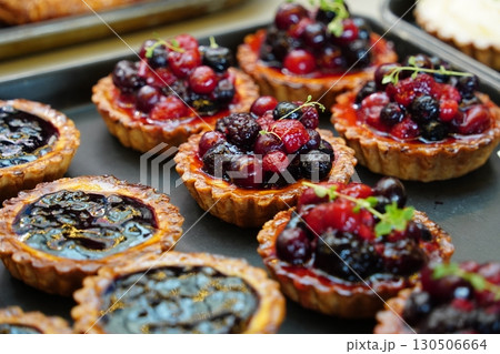Berry Tarts with Fresh Fruits and Pastries Assortment