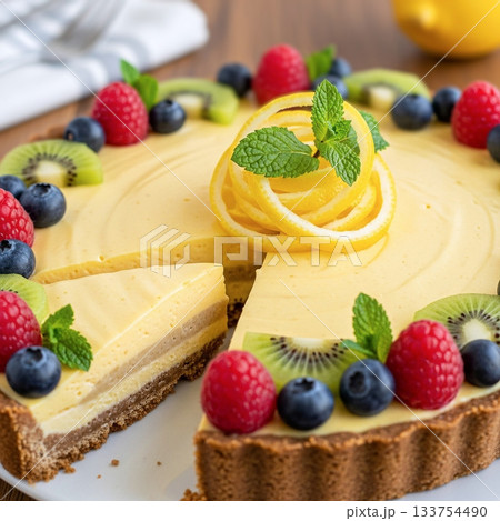 色彩繽紛的水果和清爽的檸檬!免烤檸檬塔