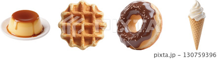 Png delicious summer desserts set with ice cream, cheesecakes, and waffles isolated on transparent background. concept of sweet treats, cafe menu, dessert selections.