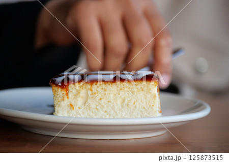 Delicious Caramel Custard Dessert on a Floral Plate Overhead Shot
