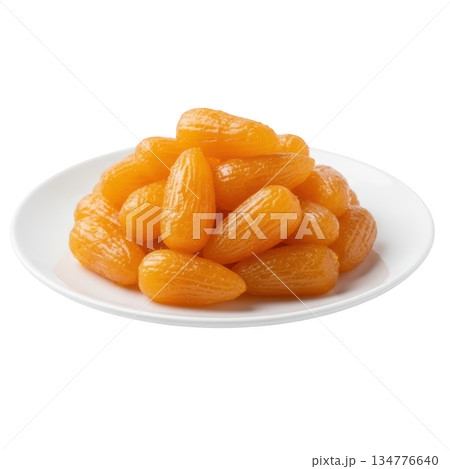 Delicious plate of Med Khanoon, sweet golden Thai dessert. An appetizing food snack full of traditional flavor