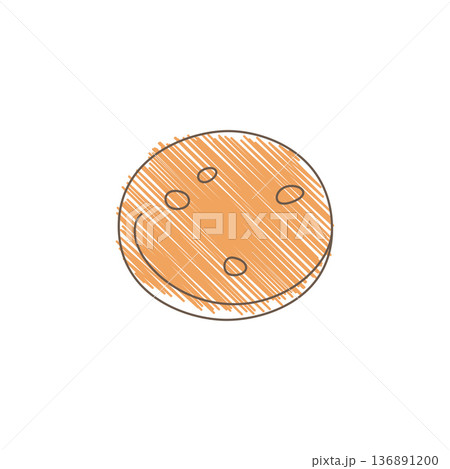 Hand Drawn Sketch Of An Oval Cookie With Chocolate Chips And Irregular Edges
