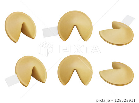 Fortune cookie cookies biscuit wafer pastry dessert on transparent cutout, PNG file. Many assorted different angles, broken, cracked, empty blank note, break. Mockup template for artwork