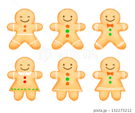 A single gingerbread man cookie decorated with white icing, illustrated in a cute watercolor style and isolated on a white background.