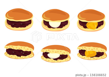 一組銅鑼燒插圖,裡面塞滿了紅豆沙。