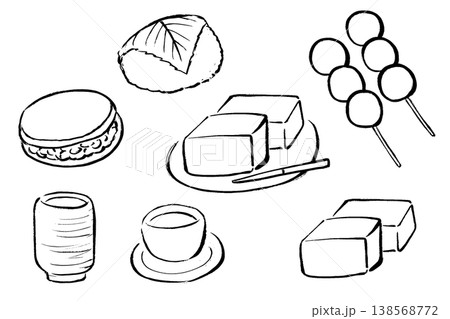 手繪日式甜點和和果子圖示集。 EPS 版本可編輯以變更線條粗細等。