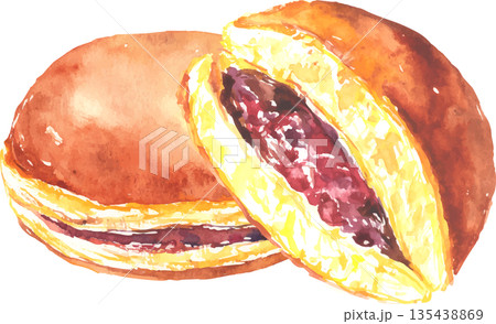 一幅手繪風格的銅鑼燒插圖,裡面裝滿了甜甜的紅豆沙。