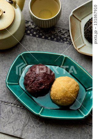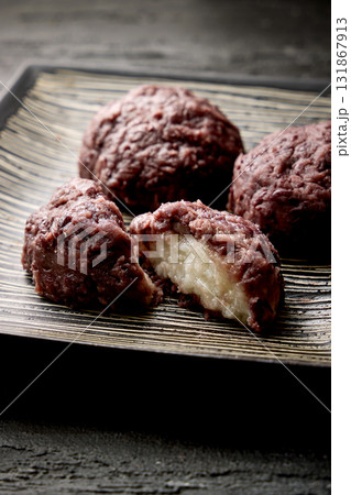 紅豆餡的日本甜點,萩餅,肉餅,肉餅,肉餅。