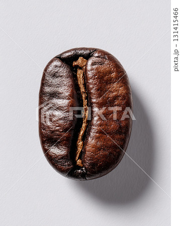 Brown Coffee Bean Close Up on White Background Showcasing Rich Texture and Unique Shape of Fresh Roasted Coffee