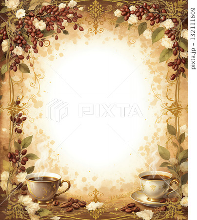 復古咖啡框架,配有優雅的杯子和咖啡豆