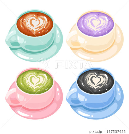 Cute variety latte art, coffee, matcha, charcoal, taro flavor