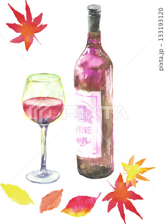 紅白葡萄酒瓶和葡萄的水彩插圖[手繪]白色背景透明背景可用影印空間