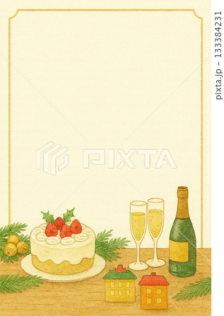 聖誕蛋糕和香檳留言卡