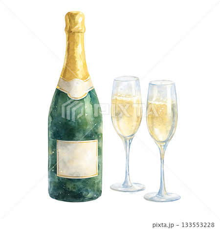 水彩插畫,描繪了雙手舉起香檳杯碰杯的場景。