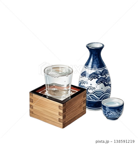 用水彩繪製的日本清酒圖像