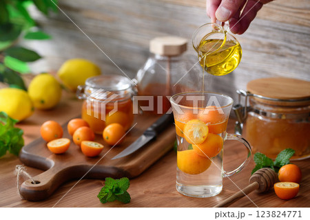 A glass filled with lemonade mixed lemongrass and ginger, combination for healthcare, skincare, helps losing weight, sleep well and reduce stress