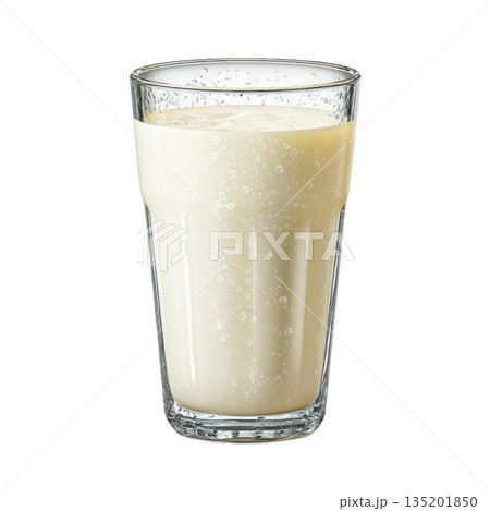 Glass of cold milk with water droplets on surface, refreshing dairy drink in transparent container, isolated on transparency background