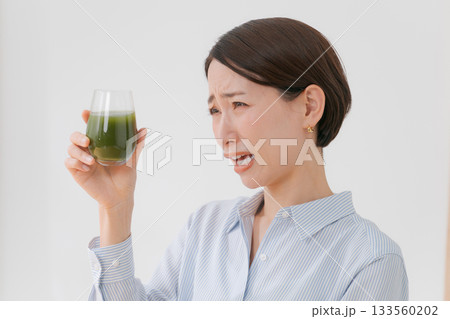 喝綠色汁液的婦女