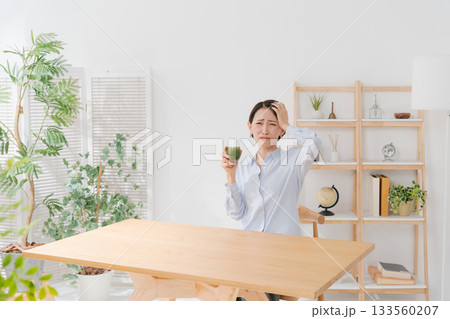 一名女子正在喝苦綠果汁