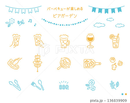 啤酒花園裝飾,配有燒烤架 / 藍天和陽光明媚的色彩