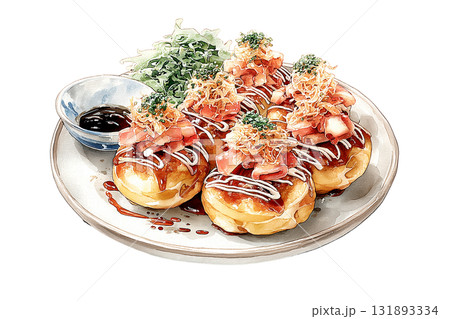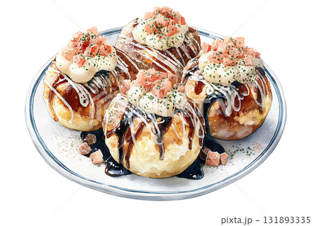 看起來美味的章魚燒的逼真水彩插圖