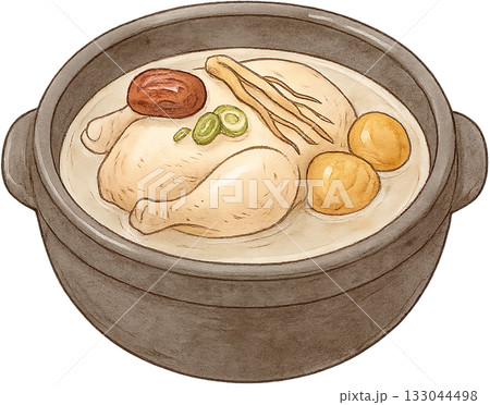 冬季火鍋火鍋鍋水彩手繪食物食物餐烹飪日本插畫素材
