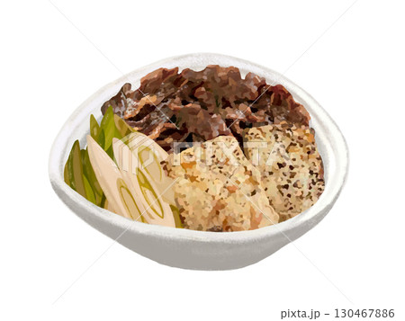 水彩插圖:煮熟的乾白蘿蔔(小碗,配菜,透明背景)