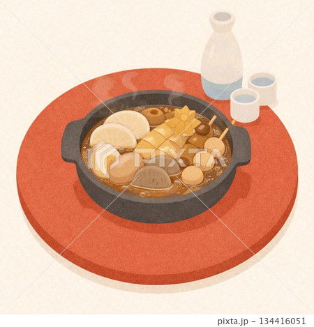 關東煮食材組插圖(彩色/冬季料理、日本料理、食材圖示)