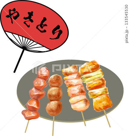 烤雞肉串插畫 - 可在居酒屋餐廳使用的畫筆風格插畫