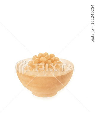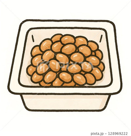 Rice topped with natto in a cup, japanese food, hand-drawn watercolor painting illustration