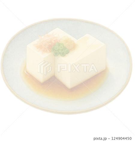 冷豆腐配調味品的插圖,水彩風格,放在盤子裡,沒有背景