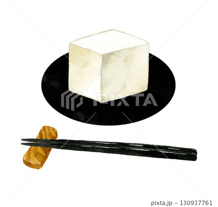 醬油豆腐-日本料理的手繪水彩插圖