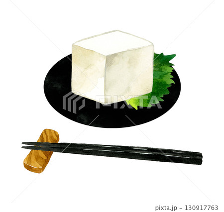 手繪水彩插圖的美味冷豆腐