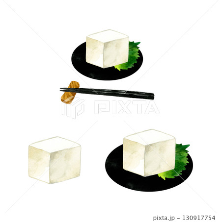 冷豆腐水彩豆腐食物夏季日本料理日本料理模擬觸摸插圖素材集