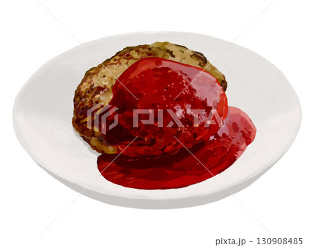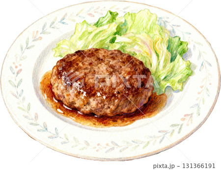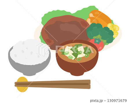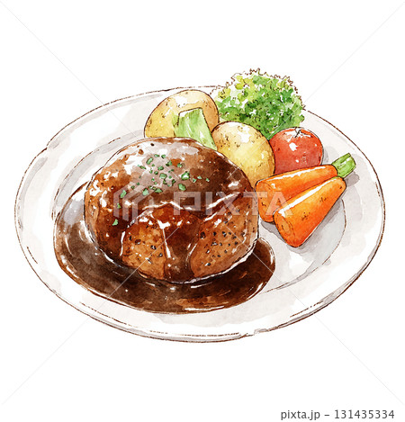 日式磨碎的漢堡牛排和蔬菜裝飾的插圖