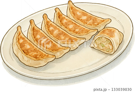 一張煎餃的插圖。此素材可用於餐廳菜單和中國菜系插圖。