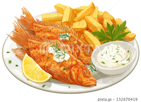 Crispy Chicken Drumsticks with French Fries and Ketchup Illustration