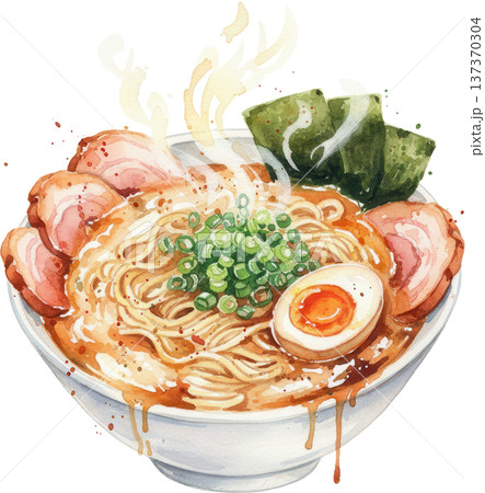 手繪水彩插圖的美味月見烏龍麵