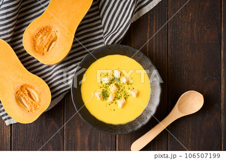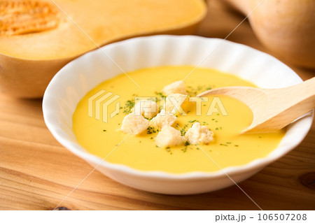 Steaming Tomato Soup Garnished With Greens in Winter Window Scene