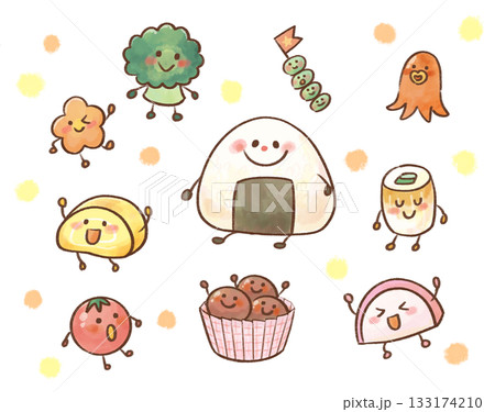 一套可愛的便當配菜人物插畫,可用於食品教育