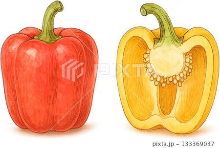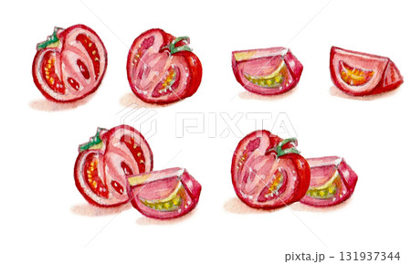 水彩畫的番茄(蔬菜)的橫切面和切片