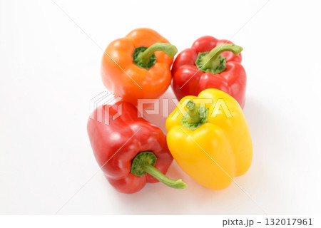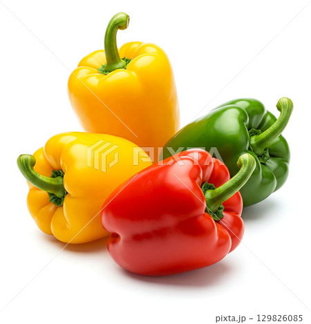 Colorful Bell Peppers Isolated on White Background. Ideal for promoting fresh produce, healthy recipes, diet plans, or use in supermarket advertising and packaging designs.