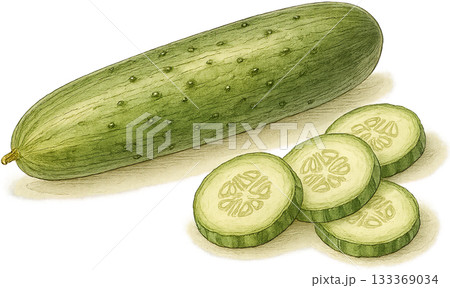 Cucumber with Slices Illustration